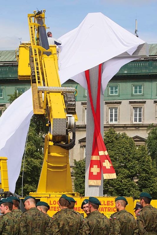 Zanim krzyż-pomnik oficjalnie odsłonięto, wiatr kilka razy zwiewał zasłonę
