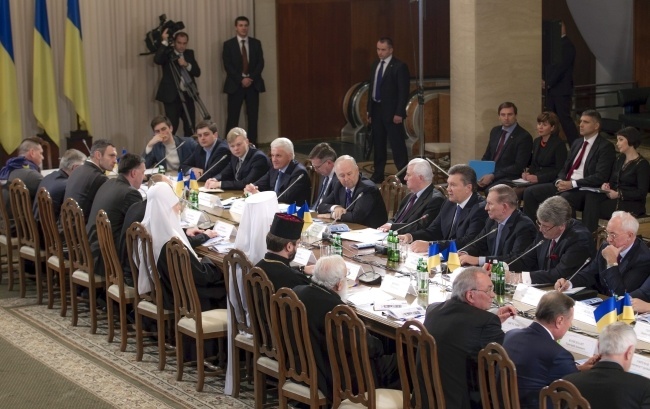 Okrągły stół zebrał się po południu w kijowskim pałacu sztuk "Ukraina". Prócz prezydenta i premiera Mykoły Azarowa uczestniczyli w nim reprezentanci Kościołów, związków zawodowych, organizacji studenckich, naukowych i twórczych oraz eksperci. Opozycję reprezentował lider Udaru Witalij Kliczko, Arsenij Jaceniuk z partii Batkiwszczyna oraz Ołeh Tiahnybok z partii Swoboda.
