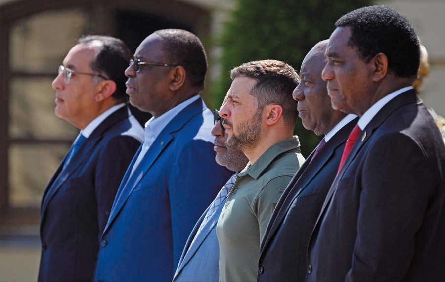 Przedstawiciele siedmiu państw Afryki złożyli wizytę na Ukrainie. Byli wśród nich prezydenci: Republiki Południowej Afryki, Senegalu, Zambii i Komorów, które w tym roku przewodniczą Unii Afrykańskiej. Dzień po rozmowach z prezydentem Zełenskim doszło do spotkania z Władimirem Putinem. Prezydent RPA Cyril Ramaphosa (nieformalny lider delegacji) przed wizytą w Europie nazywał ją „historyczną” i podkreślał: „Afryka po raz pierwszy jest zjednoczona w szukaniu rozwiązania konfliktu poza naszym kontynentem”. Wojna na Ukrainie boleśnie dotknęła państwa afrykańskie, powodując wzrost cen żywności i zakłócenia dostaw zboża oraz nawozów rolniczych. Aktywność dyplomatyczna przywódców tej części świata jest więc w pełni uzasadniona. Misja pokojowa nie przyniosła jednak żadnych efektów.