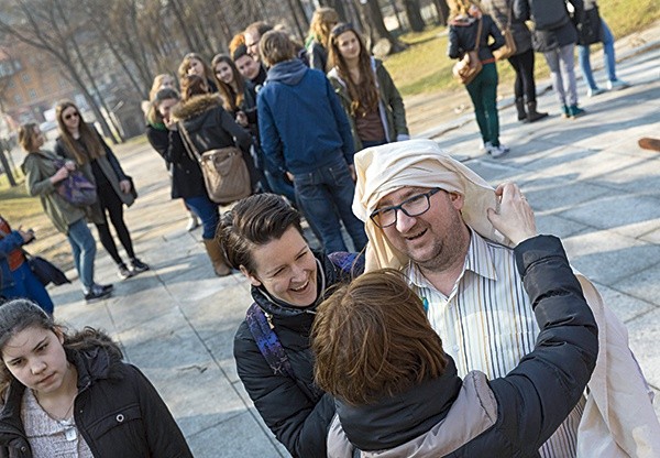 – Słowo dociera do nas, ale obraz pozwala stać się częścią wydarzeń. Patrząc na scenę biczowania, już na próbie się wzruszyłam – mówi reżyser misterium męki Pańskiej, które po prawie wieku nieobecności wróciło na piekarską kalwarię.