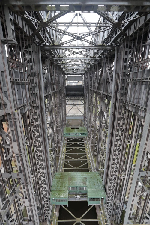 W niewielkiej niemieckiej miejscowości Niederfinow na kanale Odra-Hawela ​znajduje się potężna konstrukcja z wielką wanną, która podnosi towarowe barki na wysokość 36 metrów.
