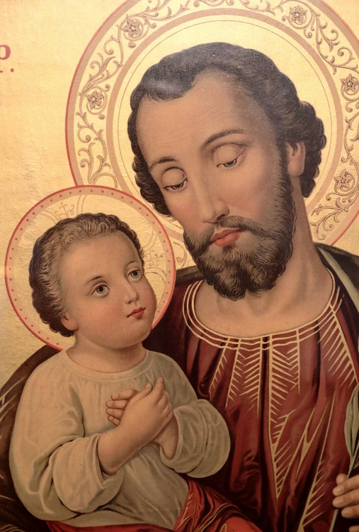 Oleodruk święty Józef z Dzieciątkiem - fragment. I poł XX w